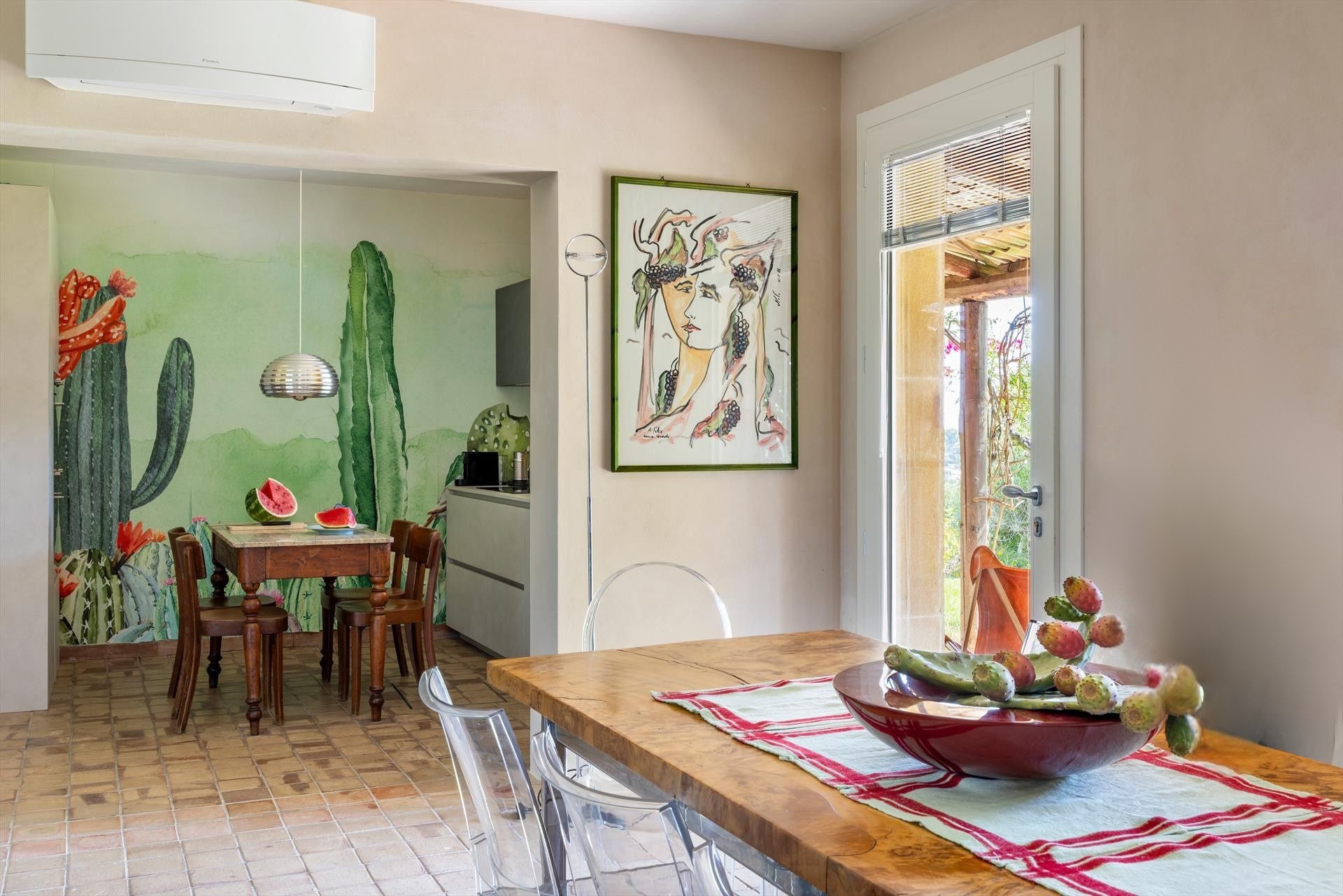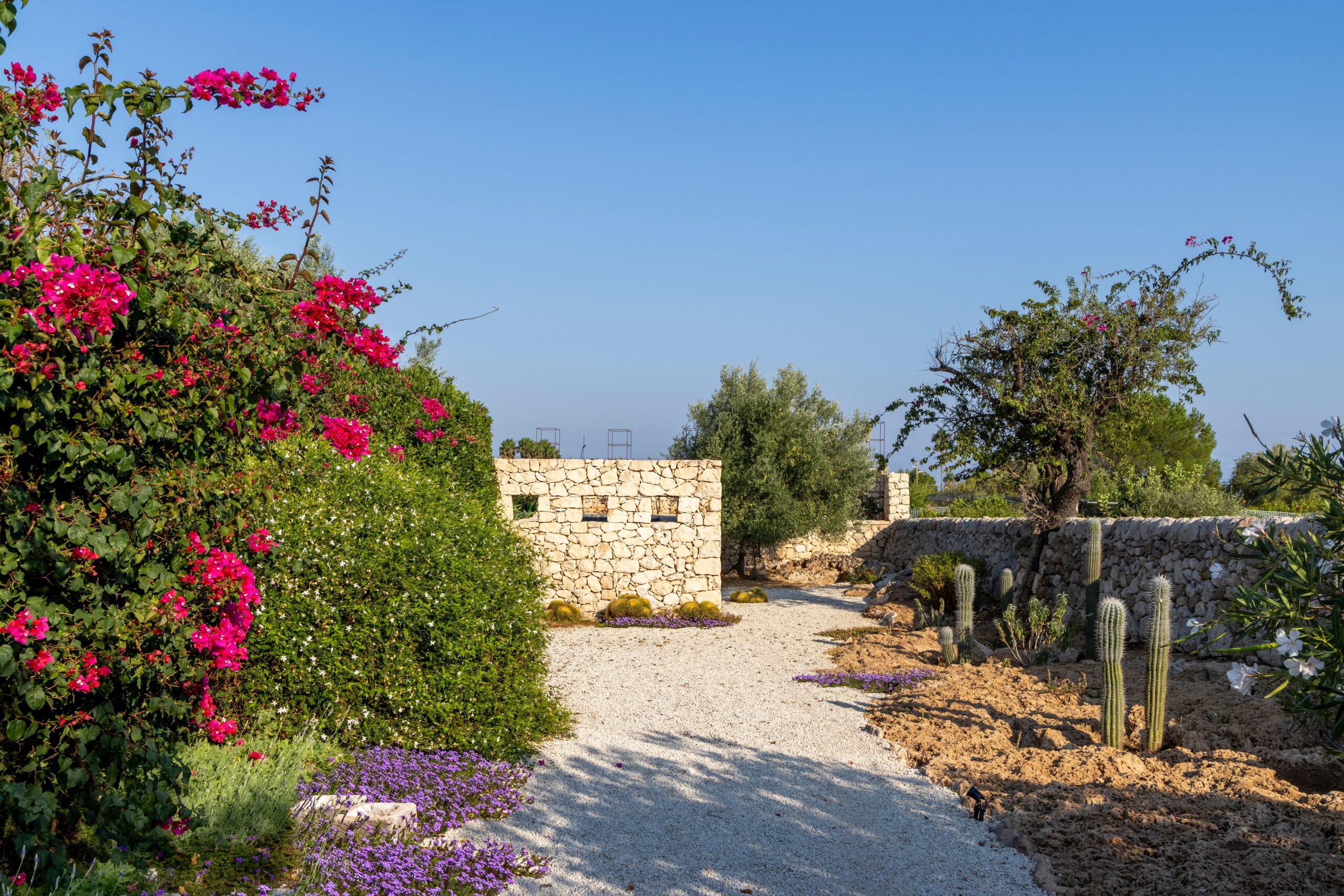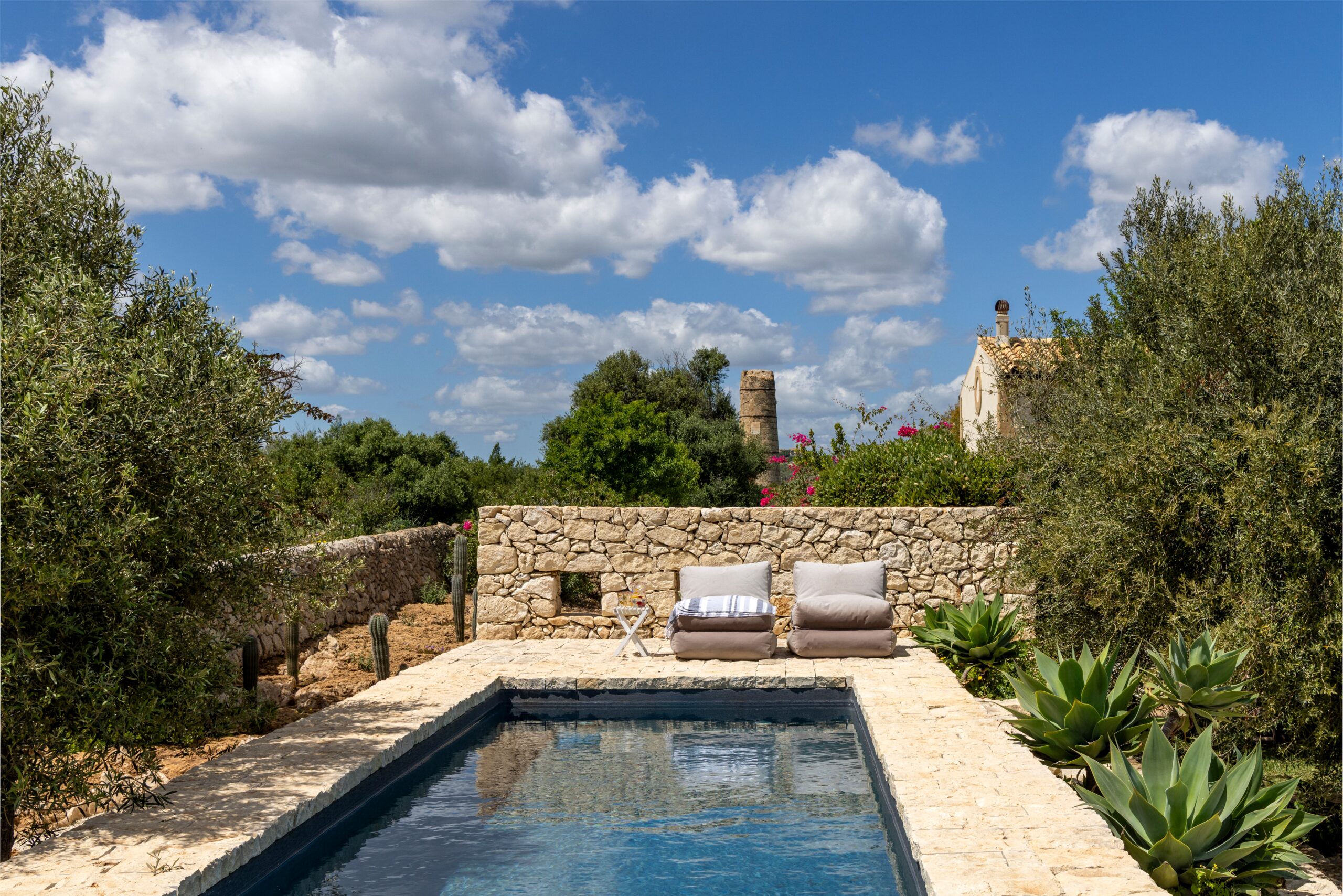 Set within one hectare of private grounds, the property includes almond and olive trees, a vegetable garden, and fruit trees, offering guests an authentic and tranquil atmosphere where the scents of the countryside blend harmoniously with the sea breeze.