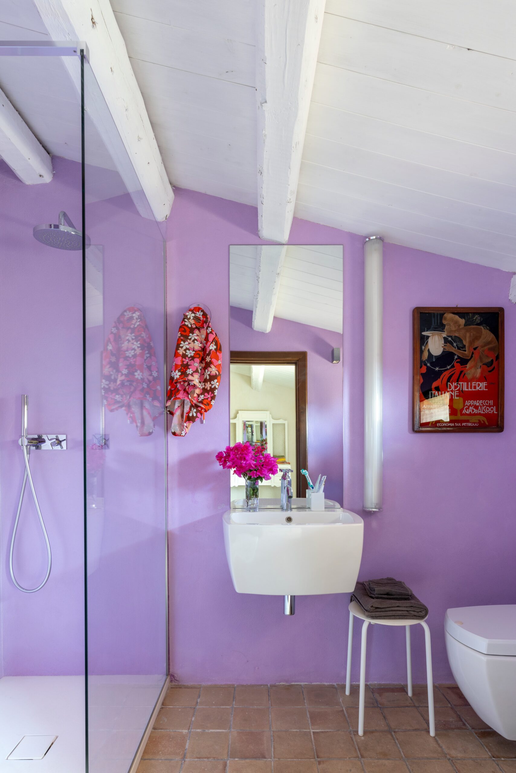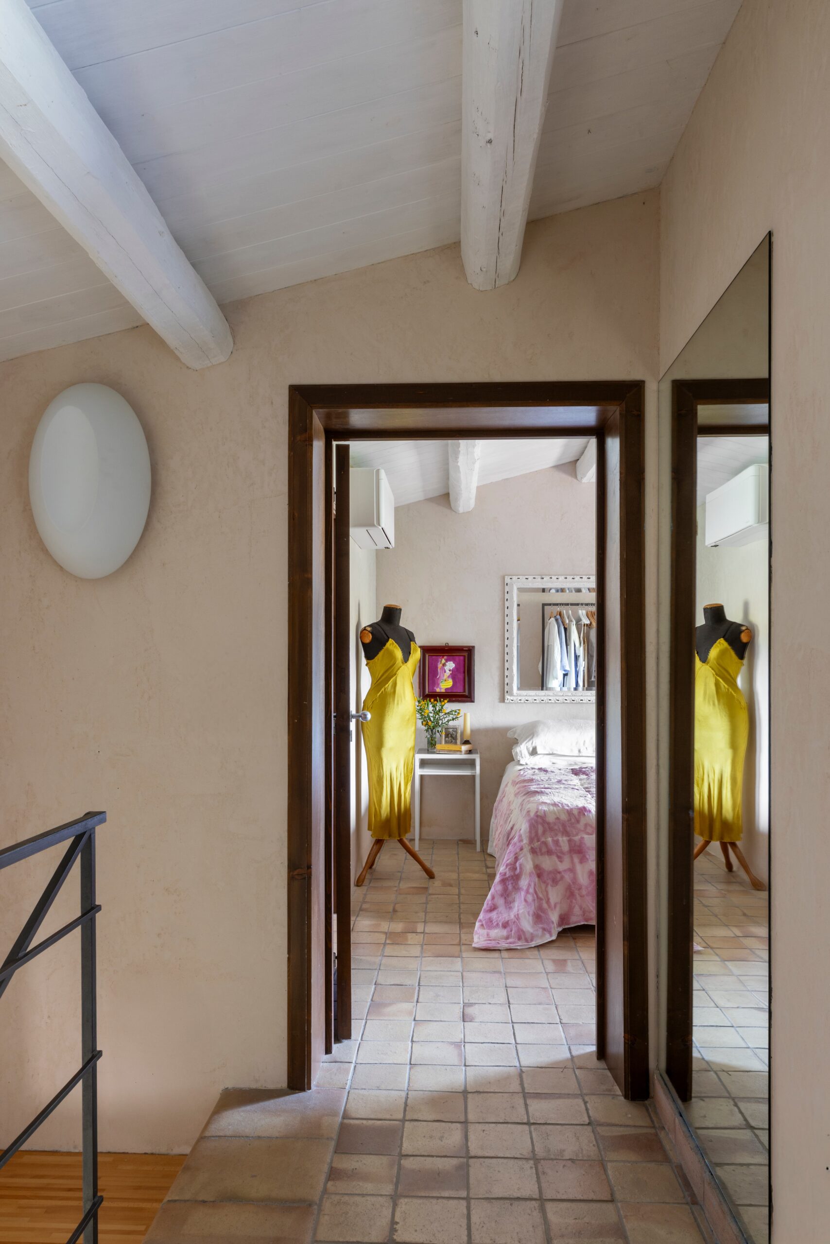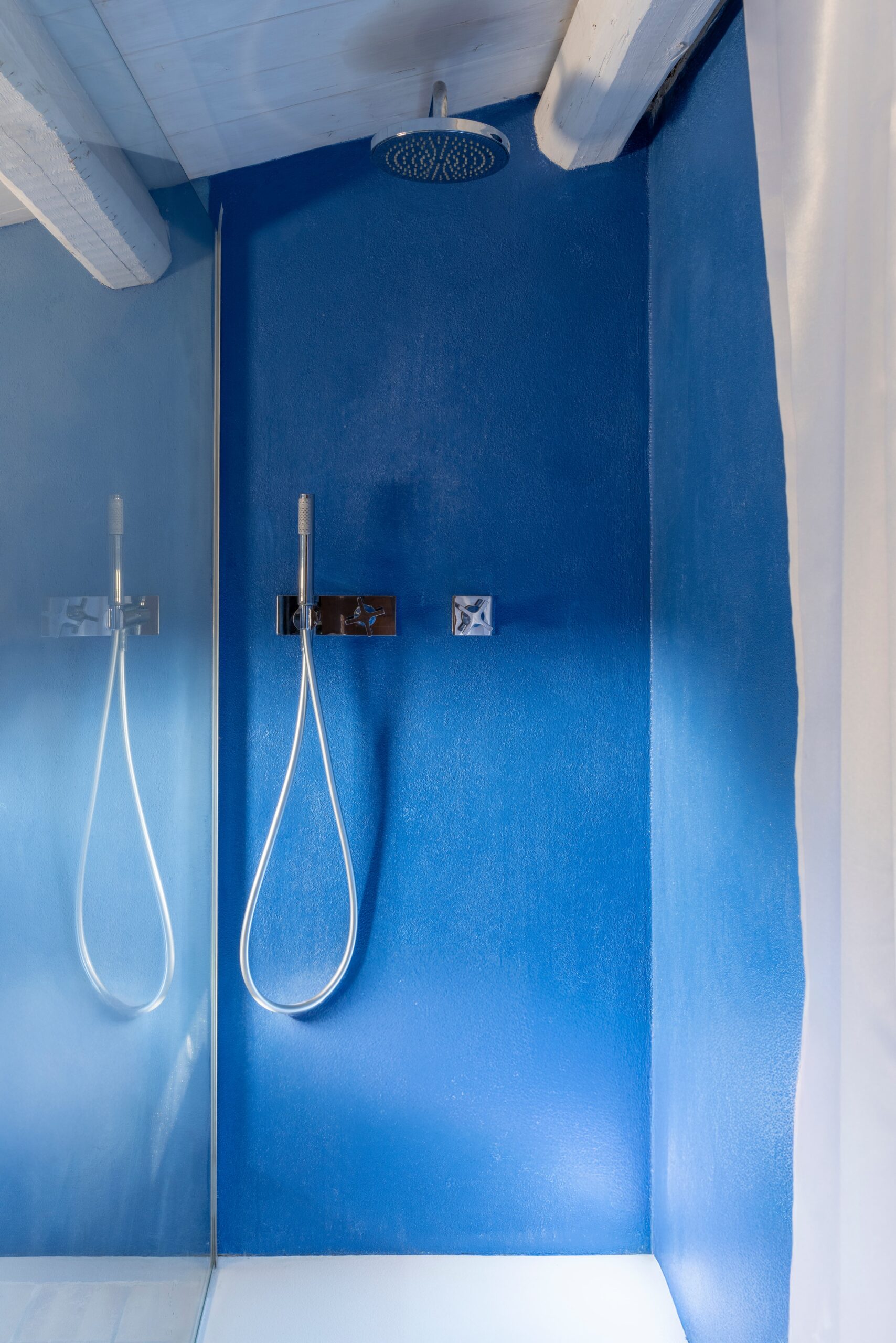 The upper floor is dedicated to the sleeping area, featuring charming exposed wooden beams and three spacious double bedrooms, each with its own private en-suite bathroom, offering comfort and privacy for every guest.